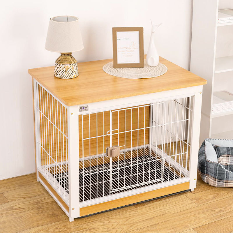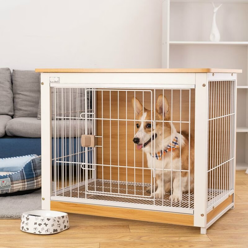 狗笼子中型犬欧式宠物笼高端狗屋室内狗别墅小型犬猫狗围栏宠物窝 黄胡桃/白74*52*65cm