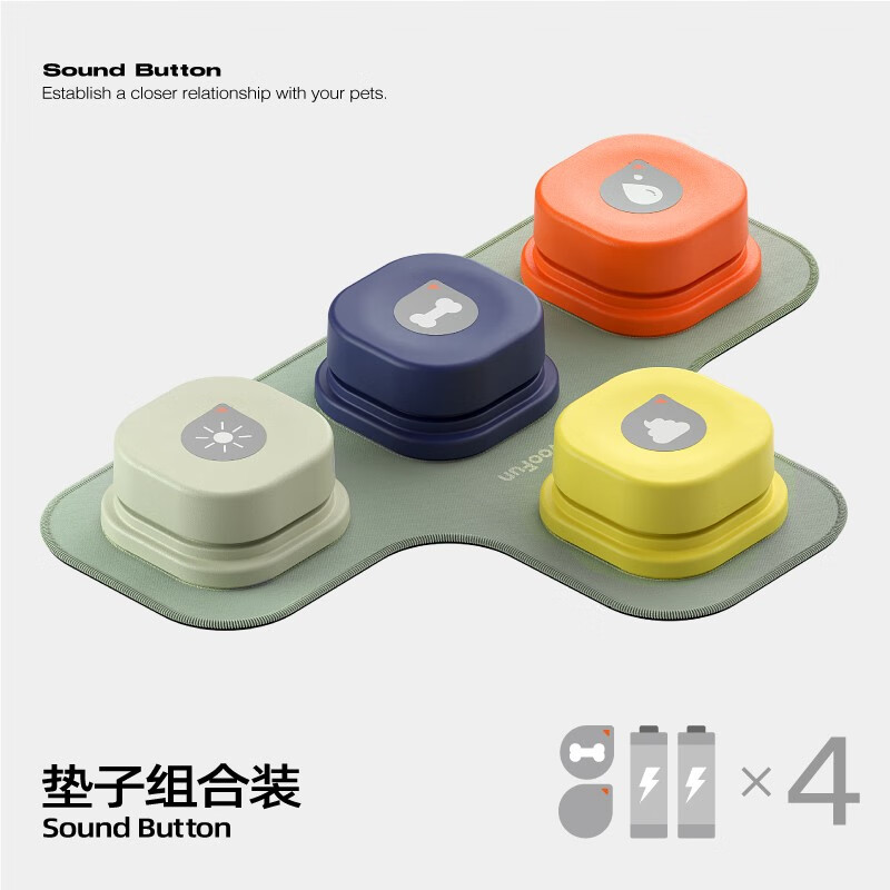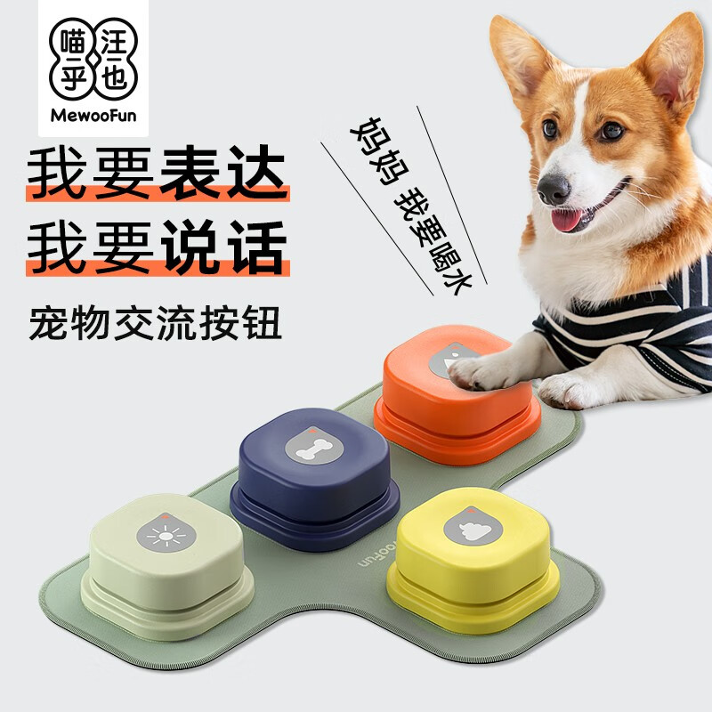 喵乎汪也MEWOOFUN狗狗按钮说话训练宠物交流发声录音按键猫咪对话玩具猫按铃器摁益智用品狗子训练器 四色一套 垫子 8节电池
