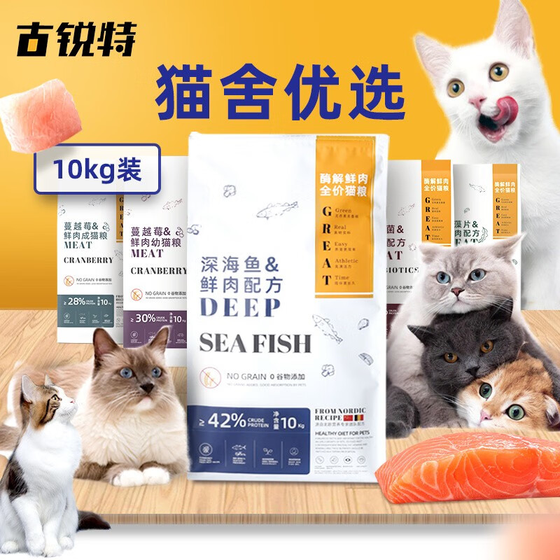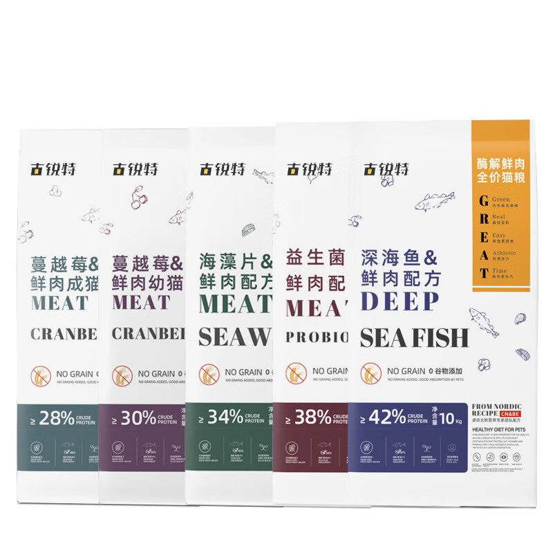 古锐特进口配方全价无谷鲜肉猫粮20斤大包装成猫幼猫美毛调理肠胃 34蛋白海藻鲜肉 10kg