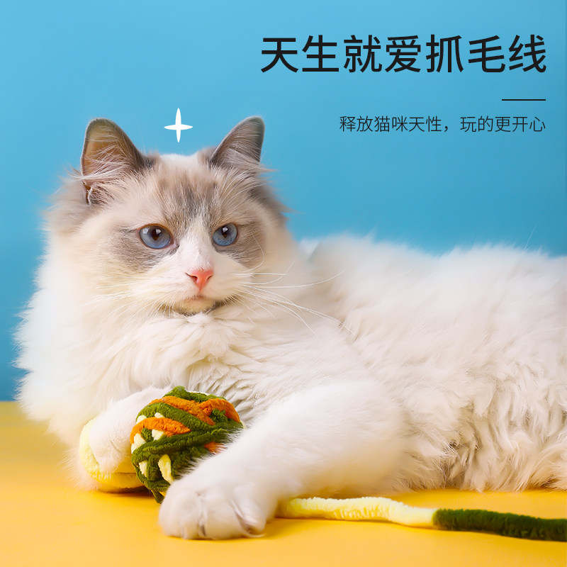 猫玩具毛线球编织逗猫球毛绒耐咬磨牙猫咪玩具自嗨解闷神器逗猫棒