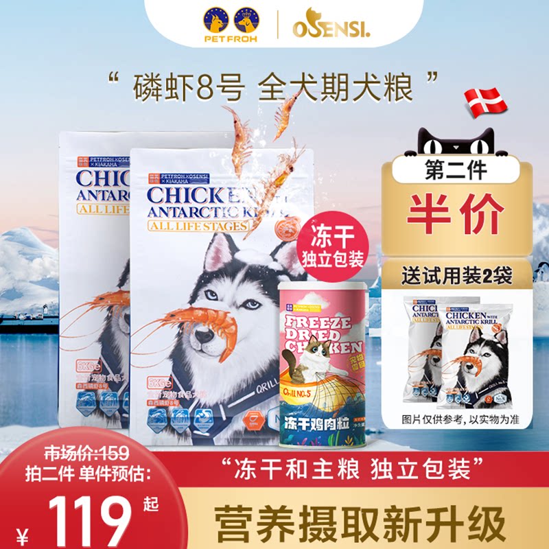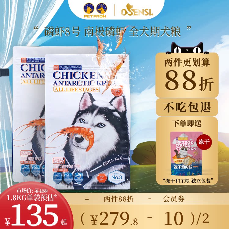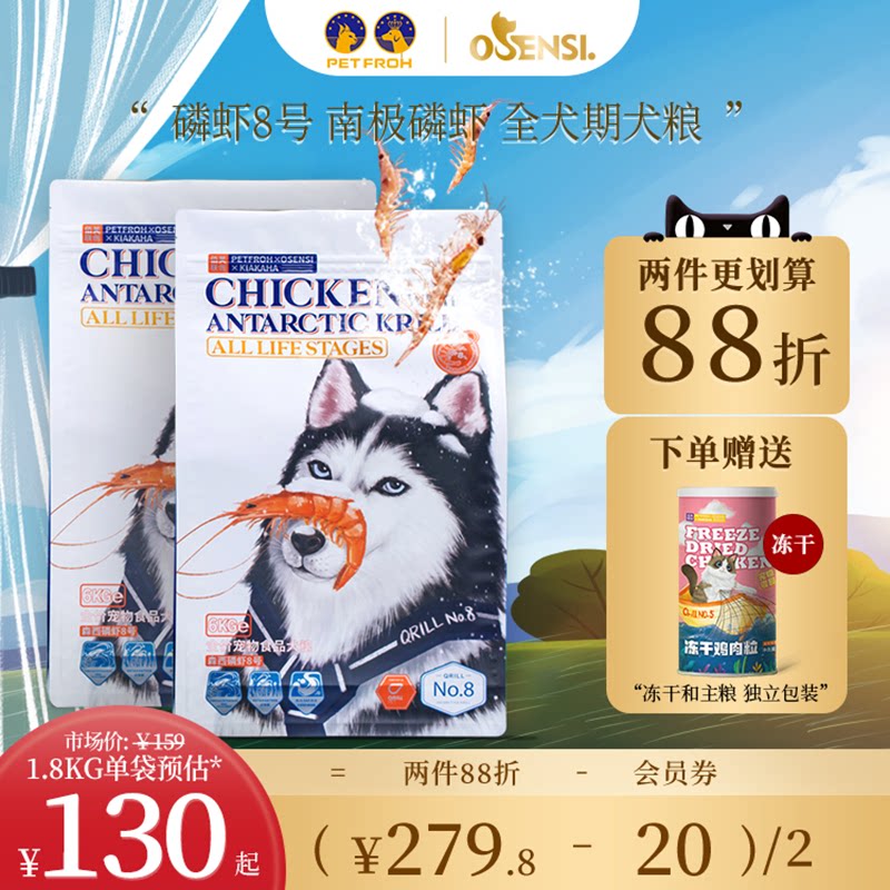 佰芙森西磷虾8号全价全期狗粮幼犬成犬通用型泰迪美毛1.8kg/6kg