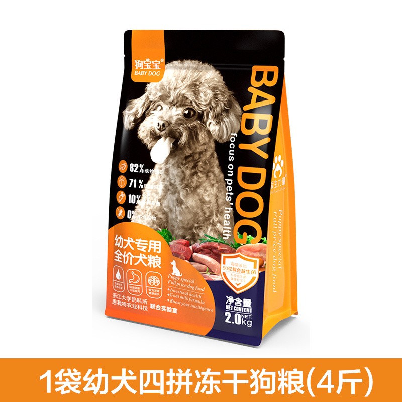 狗宝宝幼犬专用无谷冻干四拼狗粮小颗粒奶糕粮泰迪比熊博美小型犬犬粮 1袋浙大幼犬专用四拼粮(4斤)