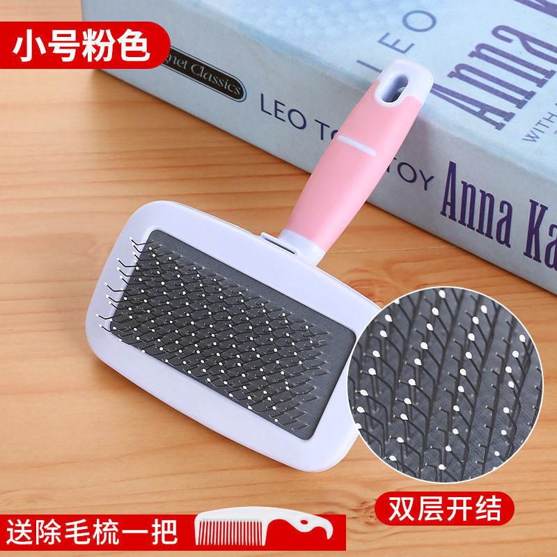 HKNA 狗狗除毛梳猫咪梳子狗毛清理器去浮毛泰迪比熊针梳开结刷宠物用品 普通款双层梳【粉色小号】