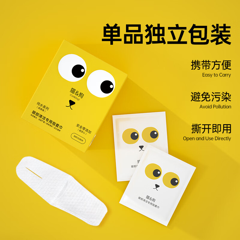 唐克力宠物眼部耳廓鼻头清洁指套巾狗猫通用湿纸巾去擦眼擦泪痕 单盒30/片