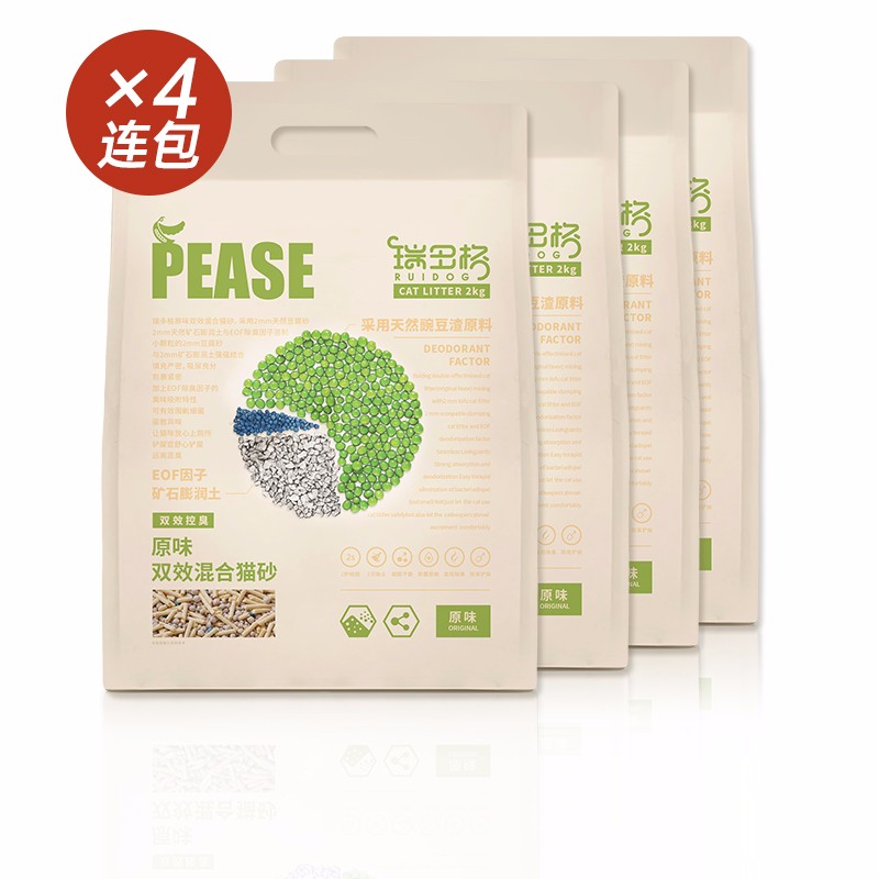 瑞多格 豆腐猫砂除臭无尘猫沙活性炭混合砂2mm 【超值囤货装】原味混合猫砂2kg*4连包