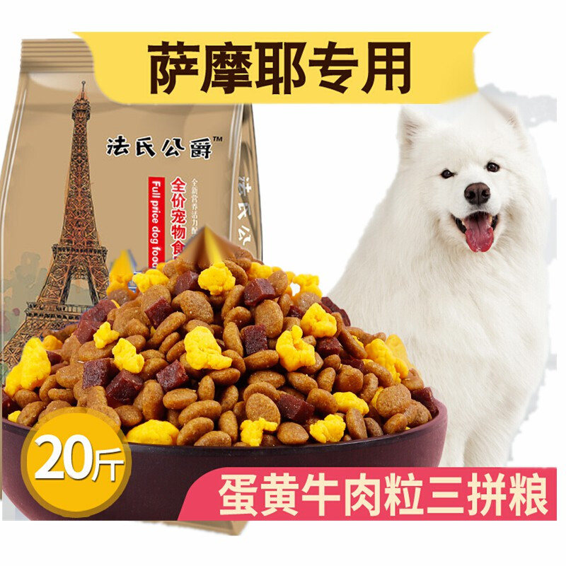 法氏公爵萨摩耶专用狗粮中型犬成犬幼犬通用20斤美毛补钙 牛肉粒蛋黄三拼粮