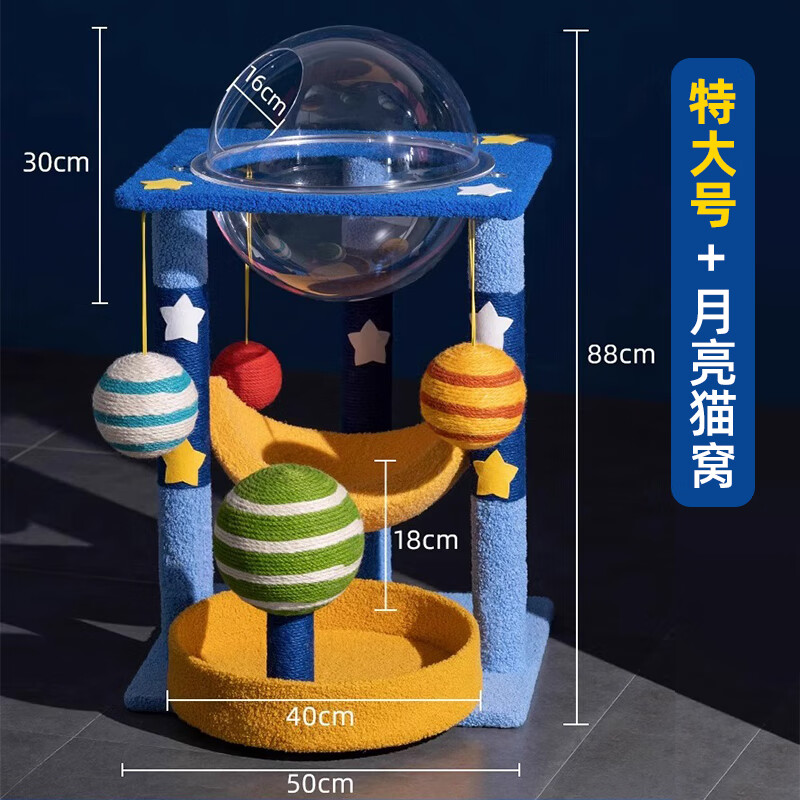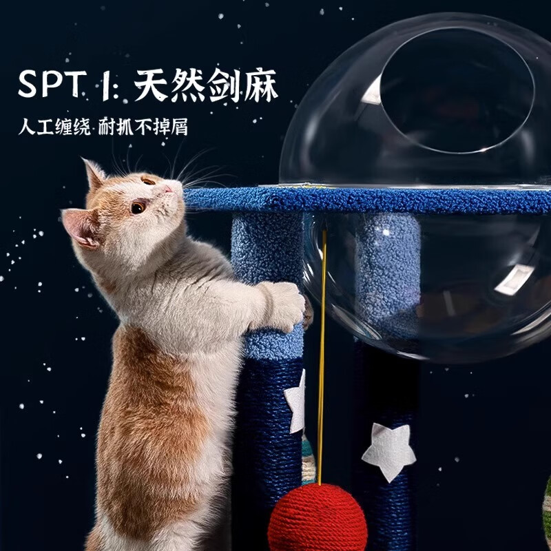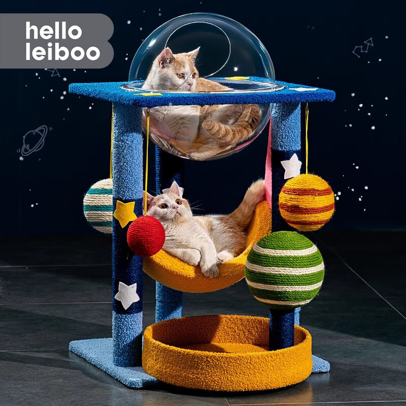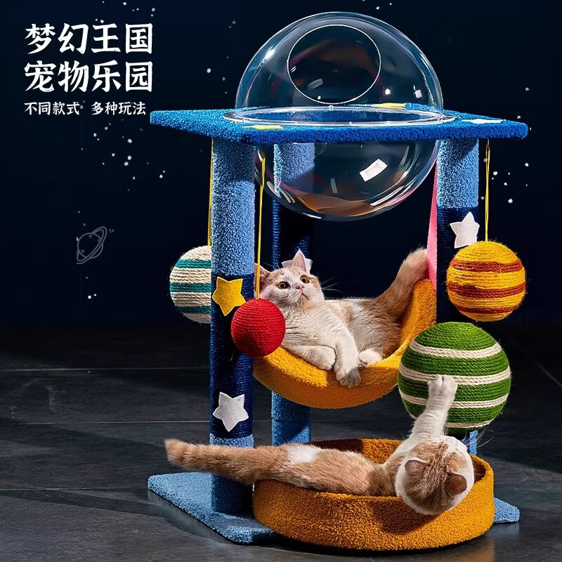 HELLOLEIBOO徕本立式剑麻猫爬架耐抓猫抓板猫窝一体自嗨解闷猫抓柱猫塔磨爪猫玩具 【太空舱 月亮窝】星空主题猫爬架