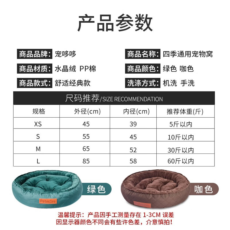 Chongdogdog狗窝猫窝中型犬小型犬冬季保暖窝比熊柯基狗床泰迪哈士奇宠物用品 绿色不可拆 S码(10斤内)【加厚加棉】