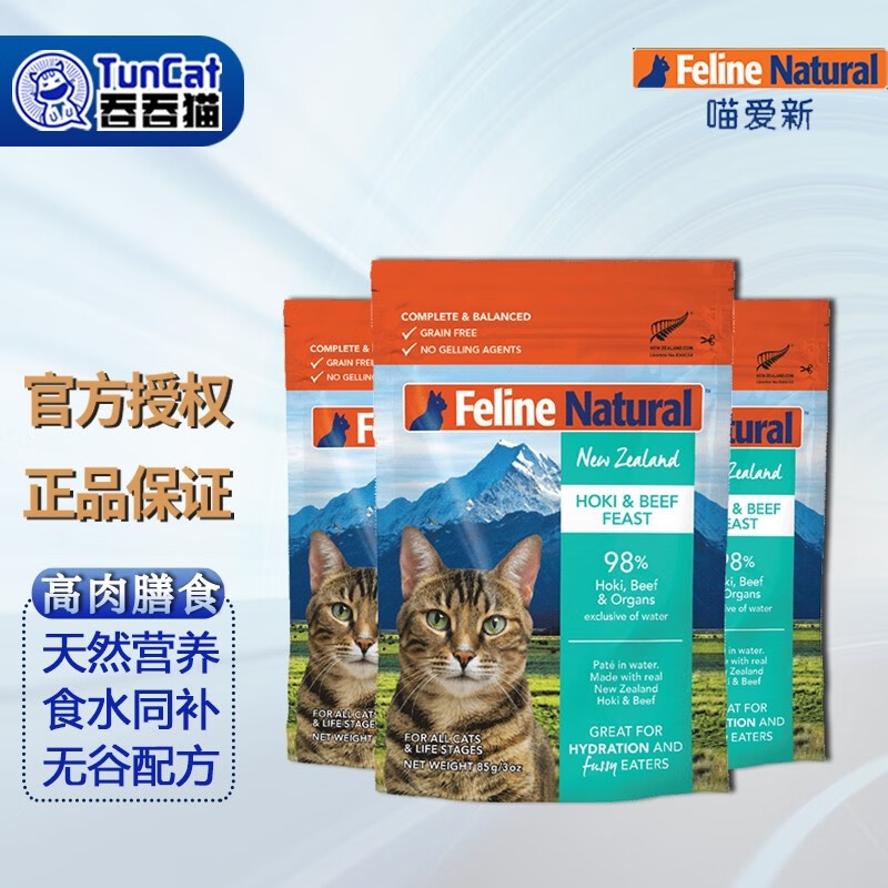 【新西兰原装进口】FelineNatural新西兰进口K9成幼猫咪主食湿粮软包猫餐包猫罐头 鳕鱼牛肉85g*3包
