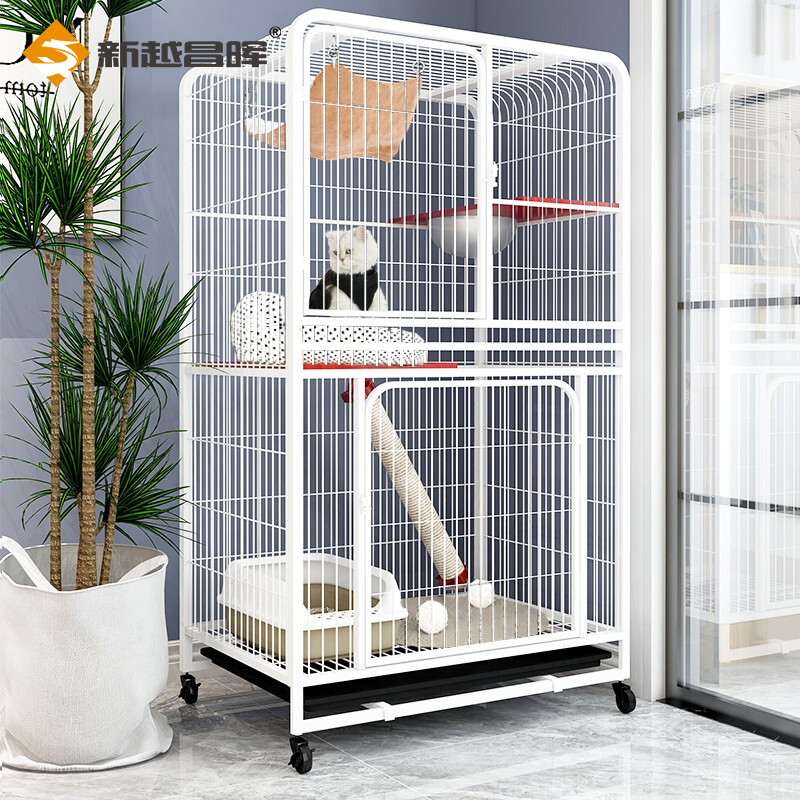 新越昌晖猫笼子 大号方管猫别墅三层猫柜 宠物猫咪房子猫窝猫屋 幼猫通用猫舍77*52*133cm 白色XY-ML06B