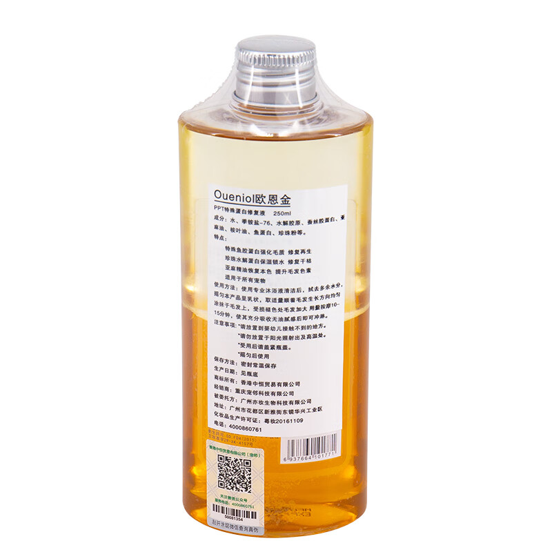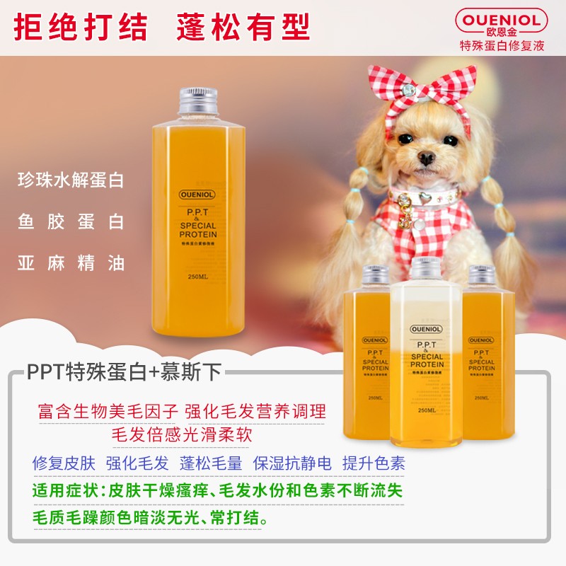 【自营时效】OUENIOL欧恩金PPT蛋白修复液狗狗猫咪护毛素洗澡开结柔顺防静电护毛乳250ml