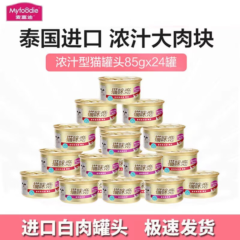 麦富迪猫罐头猫咪恋白肉24罐整箱幼猫增肥营养主食罐进口猫咪零食 鲔鱼+鲜虾[浓汤] 24罐