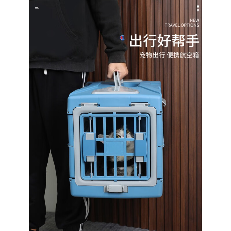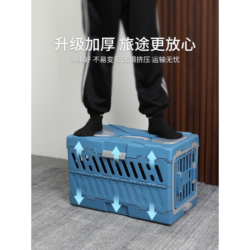 CLCEY加菲猫航空箱宠物折叠外出便携猫咪笼子小型犬托运箱航空车载猫包 静谧蓝【20斤以内】 折叠