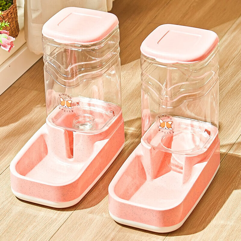楠洛宠物自动喂食器猫咪饮水机猫盆狗盆狗碗猫粮桶狗狗喝水器猫咪 樱花粉 3.8L喂食器 3.8L喂水器