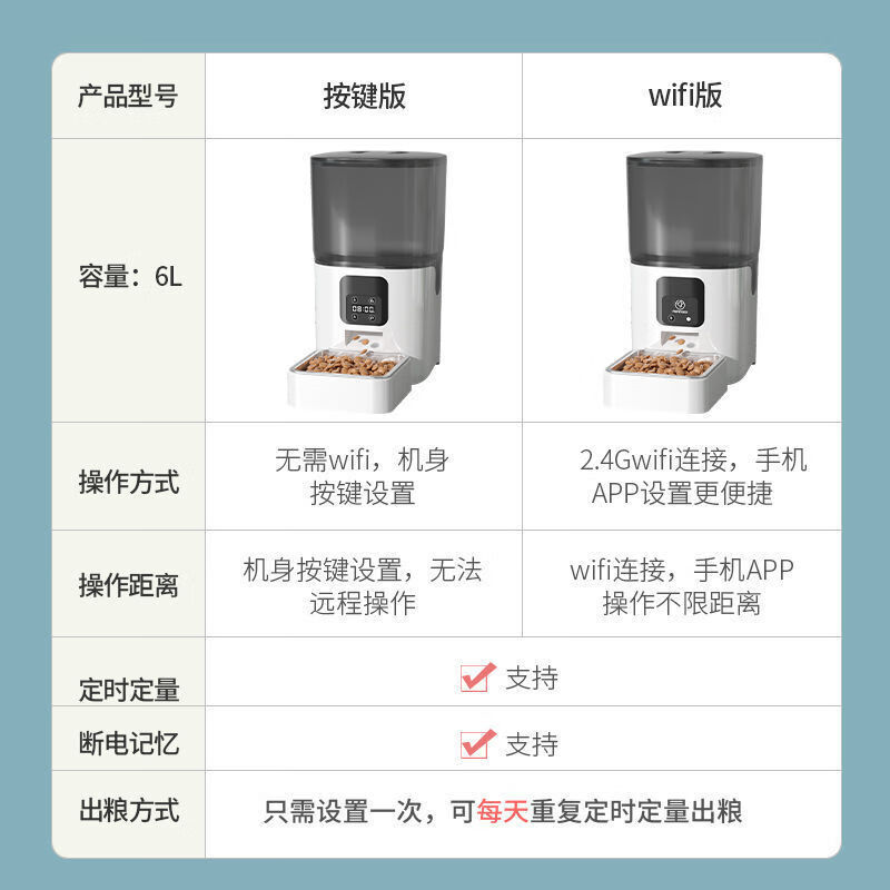 SMVPPAPIFEED猫咪自动喂食器宠物智能定时定量猫粮狗粮wifi远程喂食机 6L-按键款(送充电头)