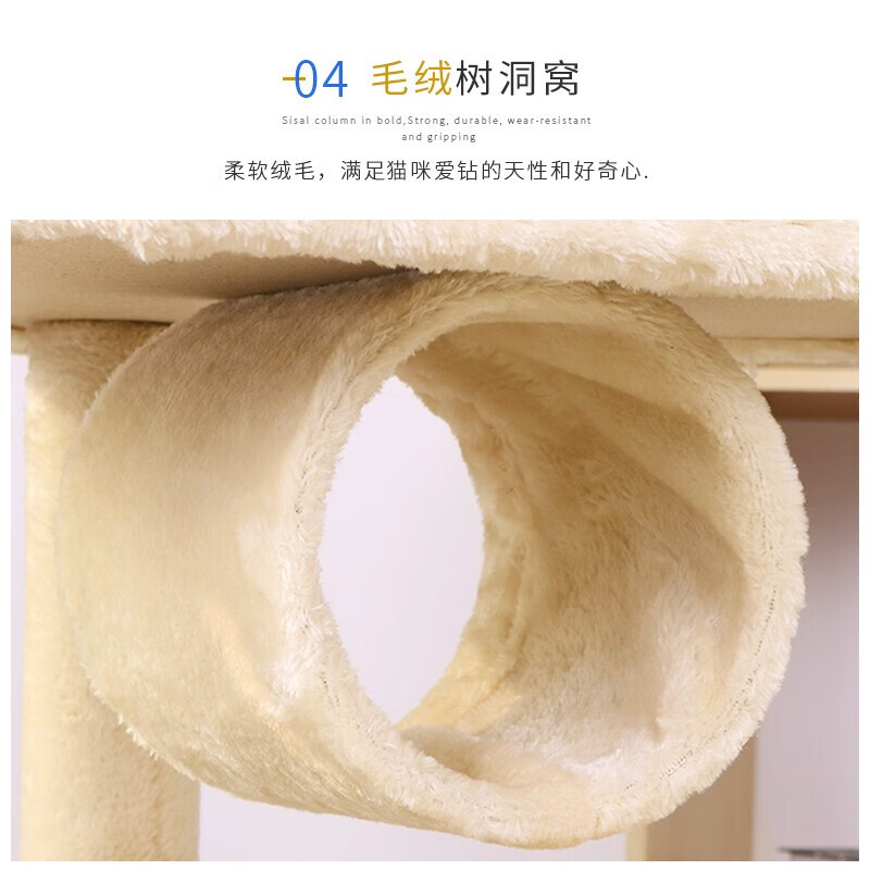 麻绳猫爬架猫窝一体大型不占地免打孔易安装实木稳固加粗跳台猫架 四层豪华猫爬架(米黄色)