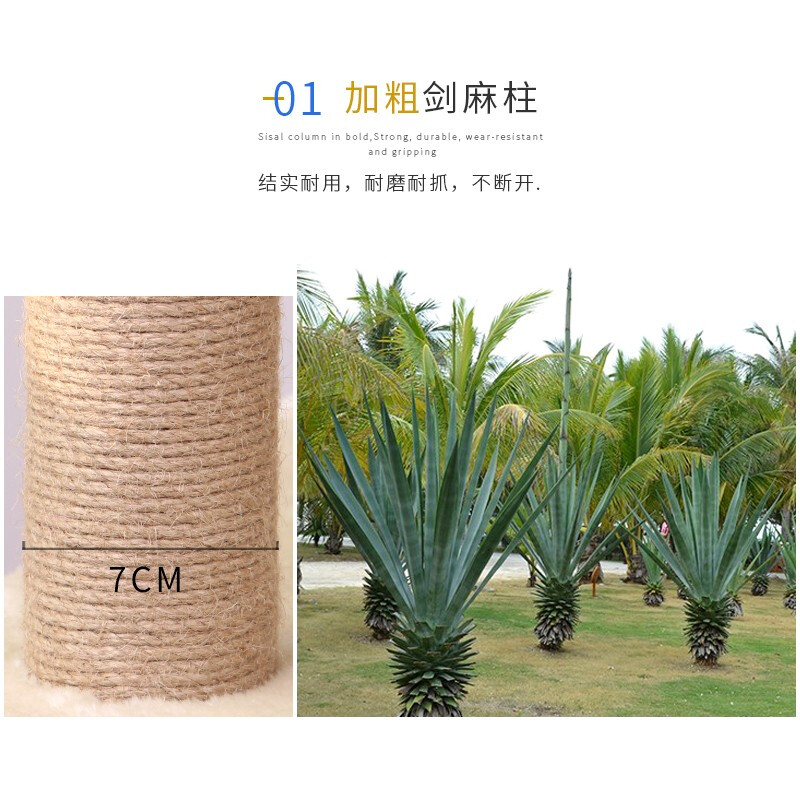 麻绳猫爬架猫窝一体大型不占地免打孔易安装实木稳固加粗跳台猫架 单柱吊球(灰色)