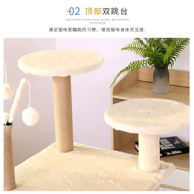 麻绳猫爬架猫窝一体大型不占地免打孔易安装实木稳固加粗跳台猫架 猫头款 (米色)