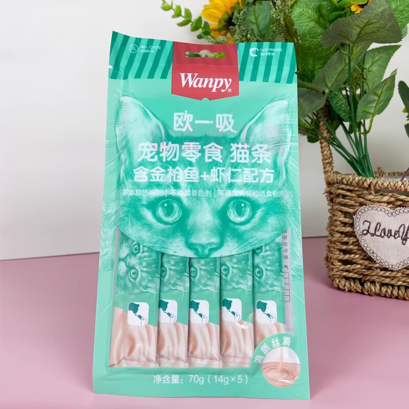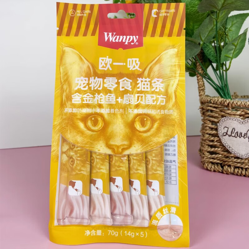 顽皮(Wanpy)猫咪零食欧一吸猫条整箱营养增肥泥罐头成幼猫吸条罐头 金枪+扇贝 50支 10.包