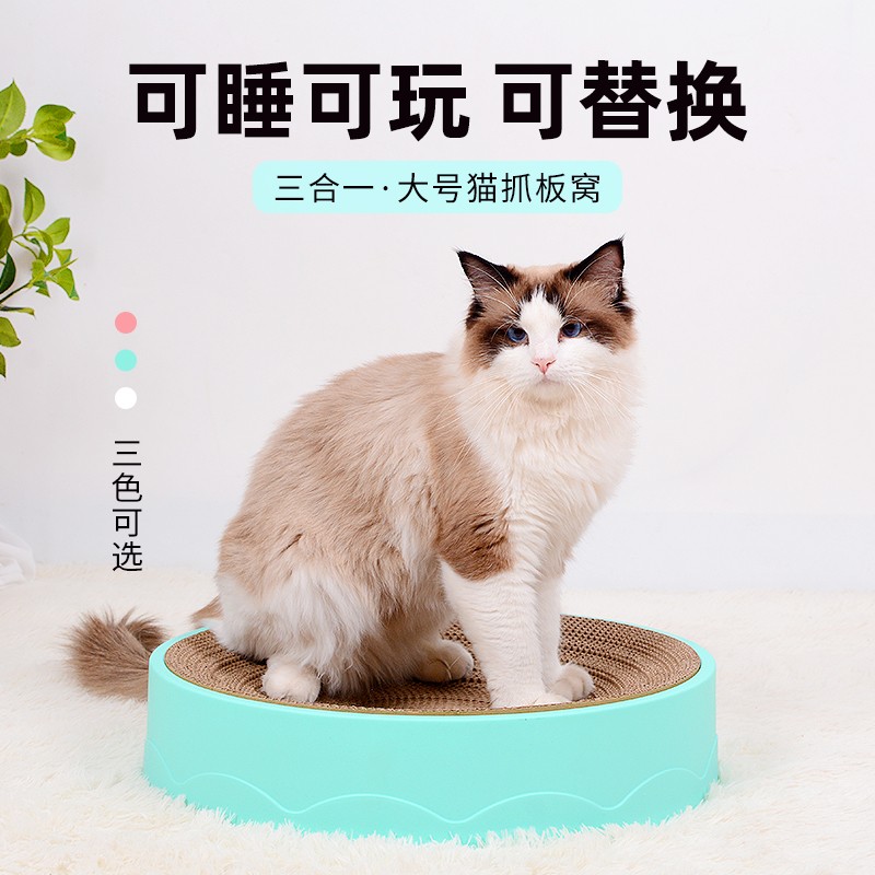 伊萨猫抓板窝碗形大号猫窝宠物猫玩具瓦楞纸猫爪板磨爪器猫咪用品玩睡一体 【推荐】白色猫抓板(40*9.5cm) 替换芯1个