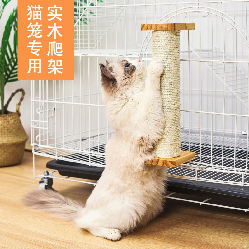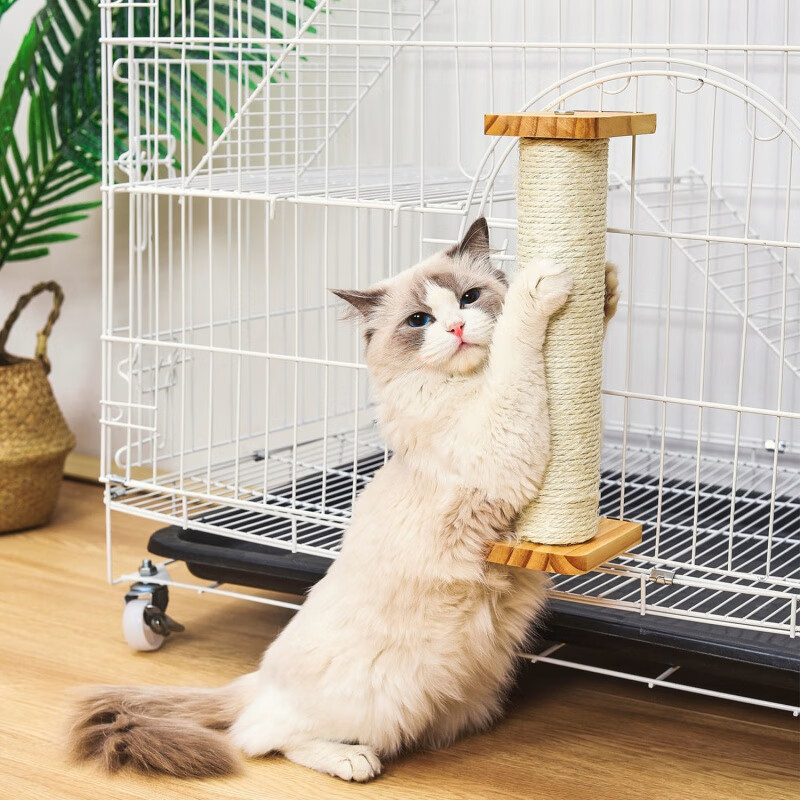 猫笼子实木配件猫抓板立式猫抓柱剑麻柱悬挂式猫爬架材料猫咪用品 30cm棉麻柱 固定配件