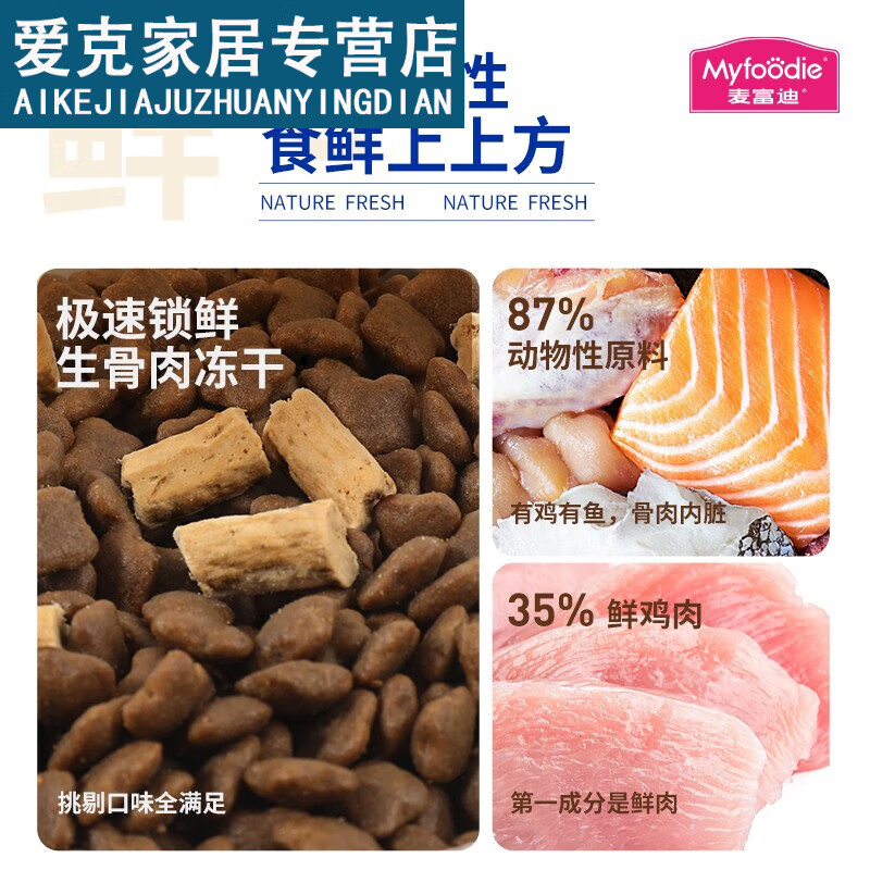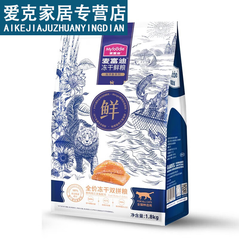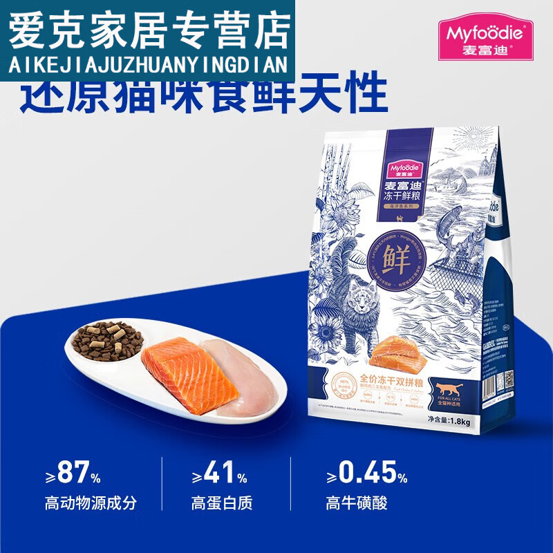 麦富迪(Myfoodie)麦富迪 猫粮 冻干营养鲜粮成幼猫通用全期猫粮(添加生骨肉冻干) 三文鱼鸡肉 1.8kg