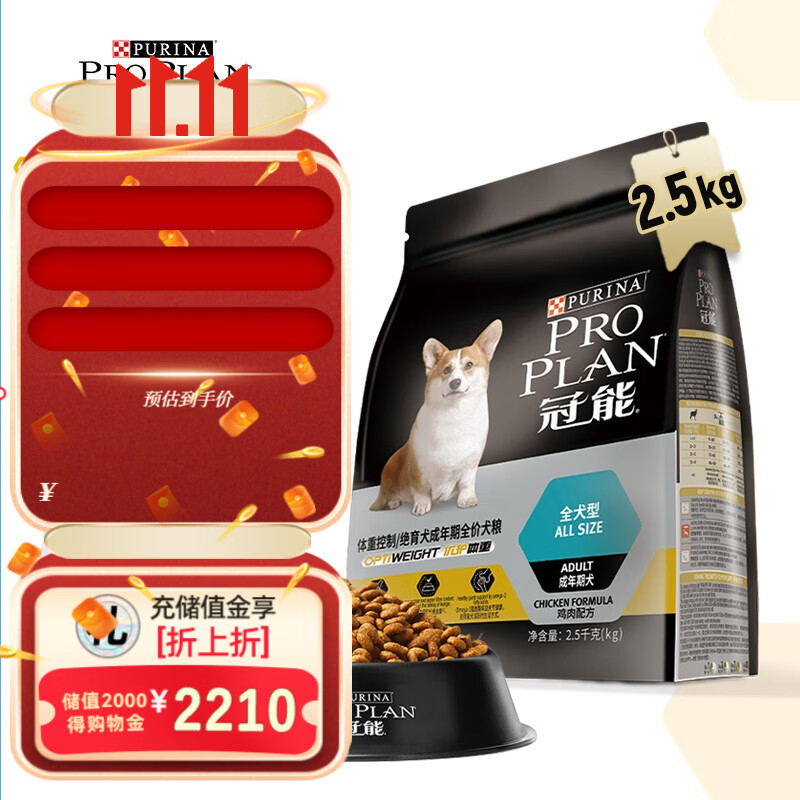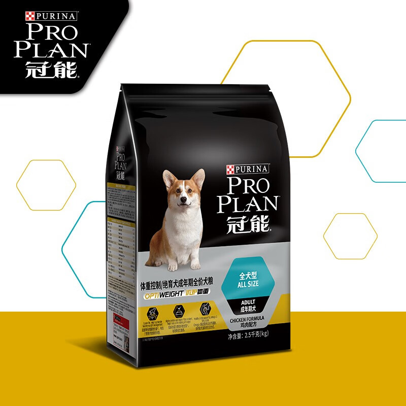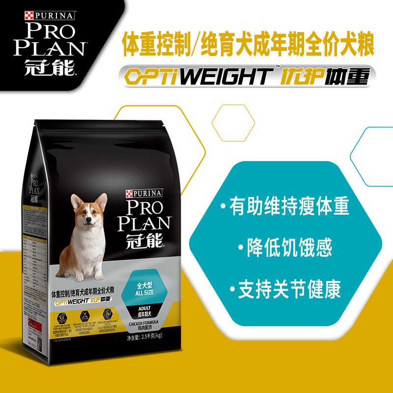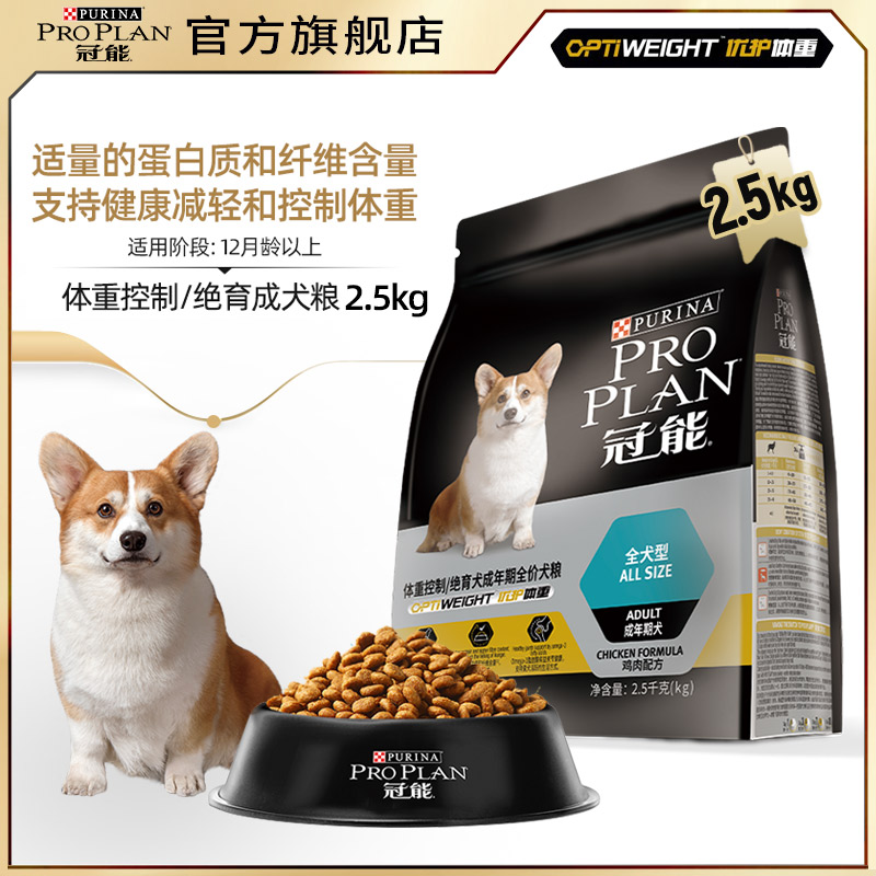 冠能(PRO PLAN)狗粮 成犬狗粮 体重控制/绝育狗专用狗粮 泰迪阿拉斯加柯基全犬通用2.5kg 成犬粮(2段大于12个月)