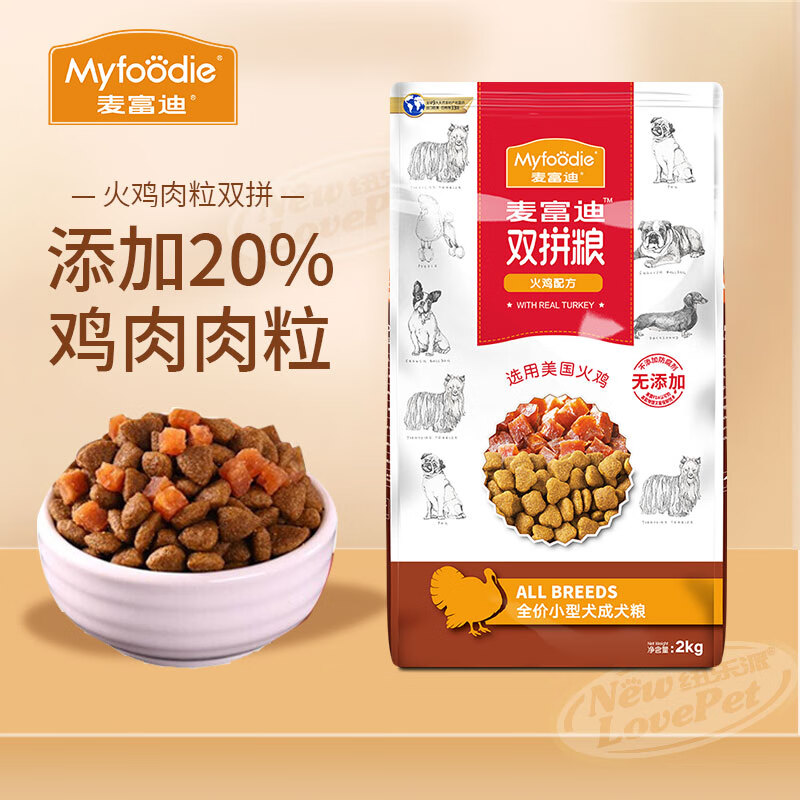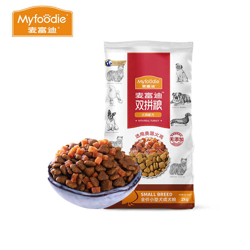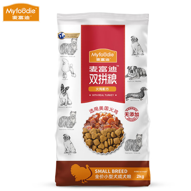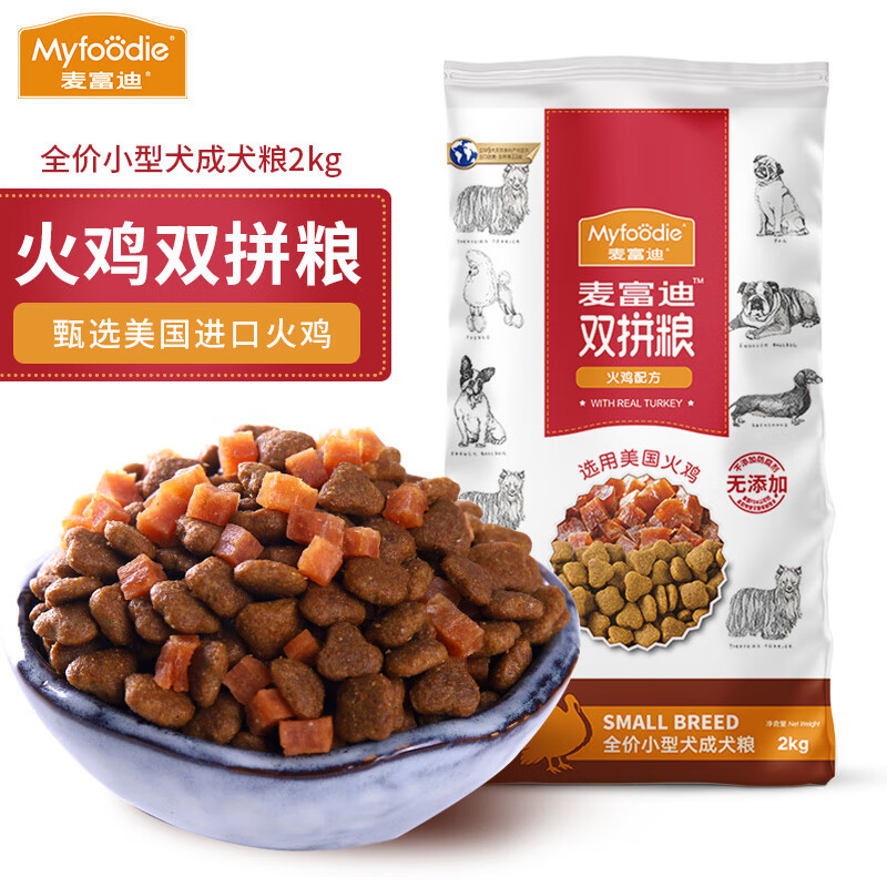 麦富迪Myfoodie火鸡肉粒双拼狗粮泰迪金毛萨摩耶柯基天然犬粮 小型犬成犬2kg