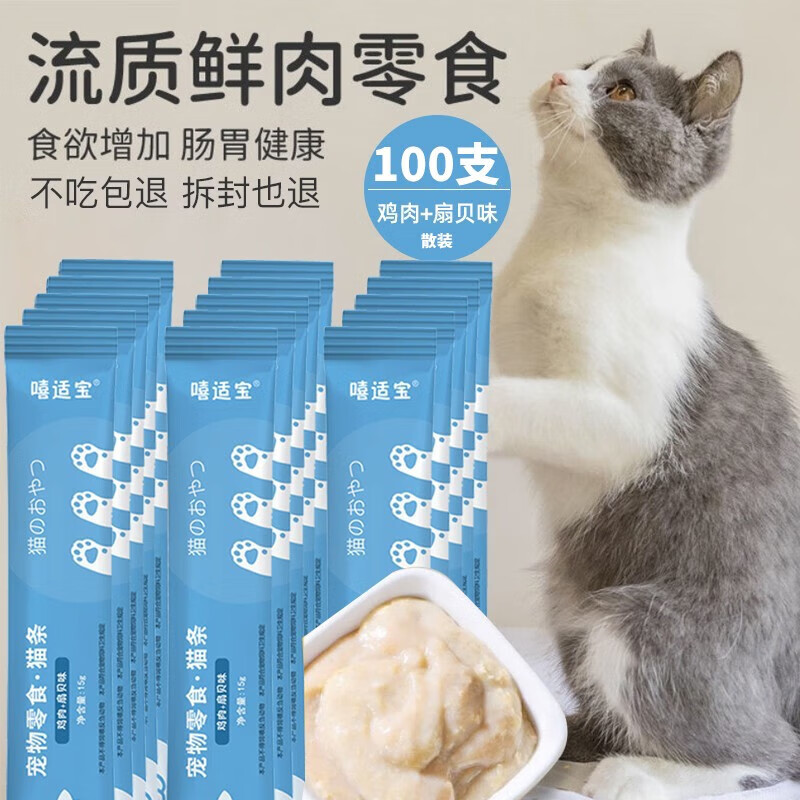 嘻适宝猫条营养洁齿鸡肉三文金枪鱼宠物成幼猫咪流质零食 鸡肉扇贝味*100支(15g/支)散装