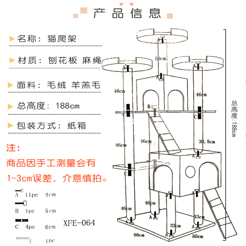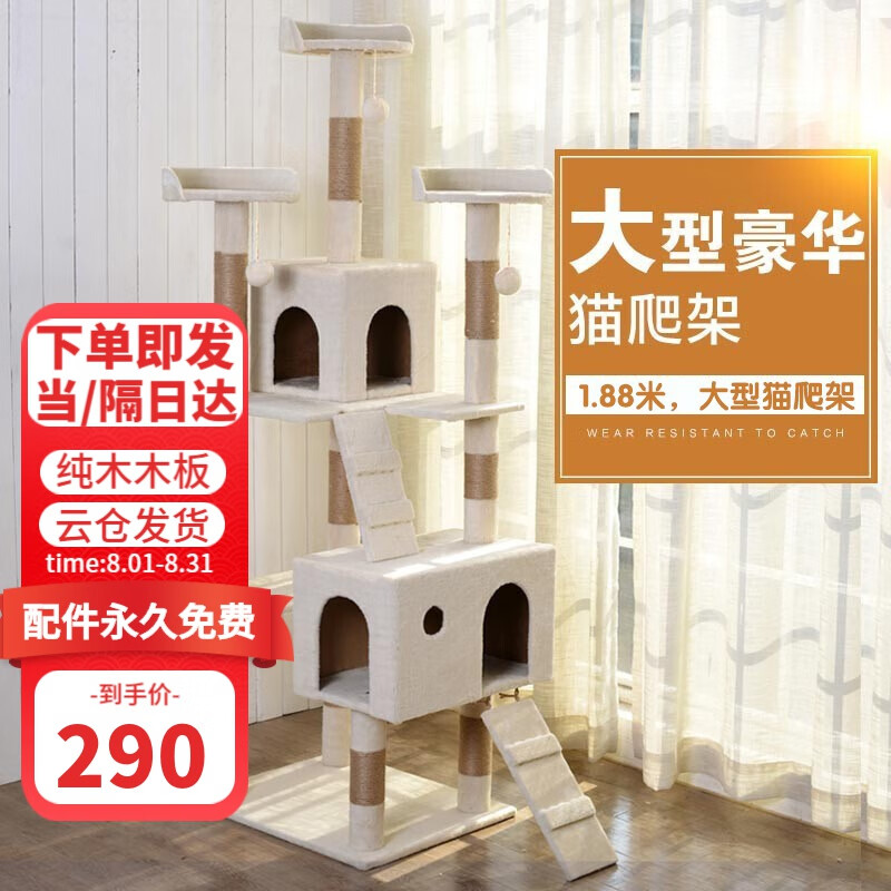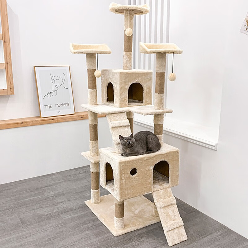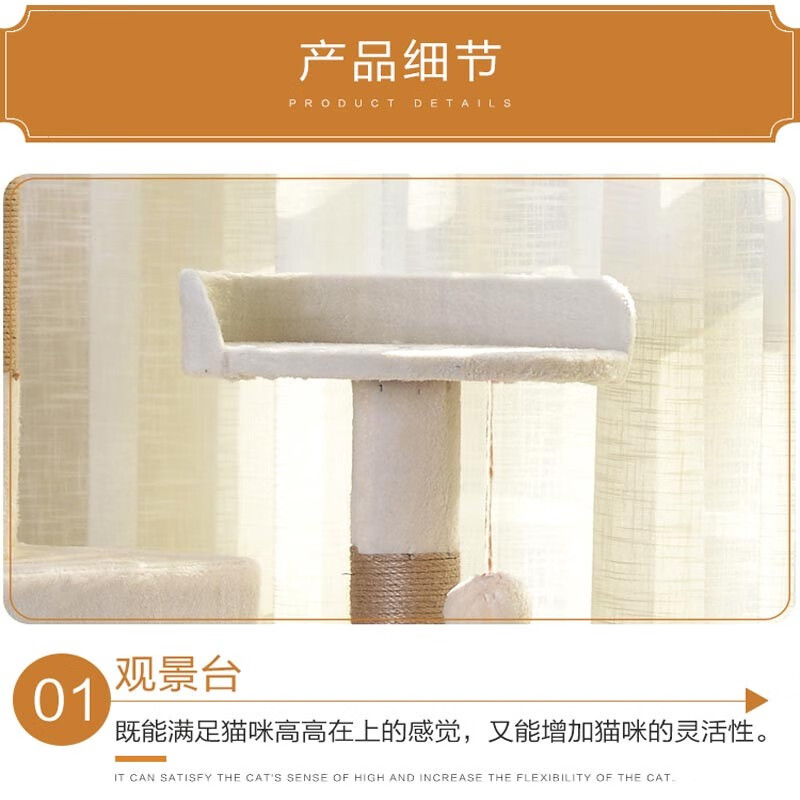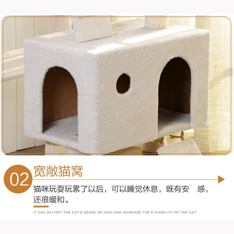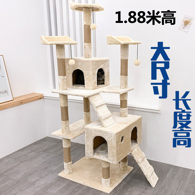 坏小宠【1.88m加粗加高柱】猫爬架大号剑麻猫窝猫咪玩具猫抓板猫抓柱毛绒布猫跳台猫架子猫玩具猫树 1.88米五层款【米色】