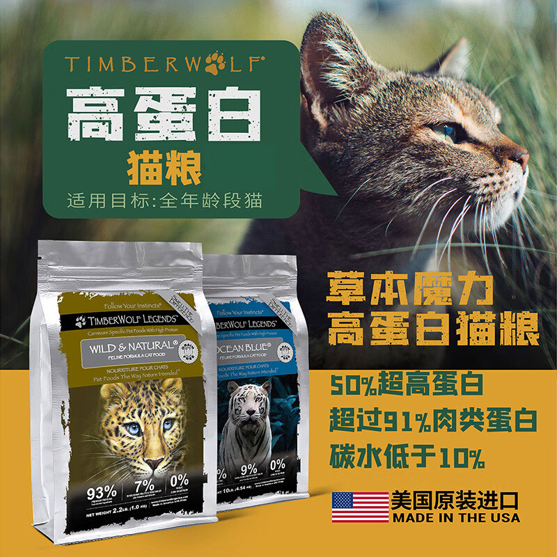 Timberwolf美国进口【保税】草本魔力高蛋白鱼肉配方无谷成猫幼猫粮通用全 2.2磅/1kg 高蛋白鱼肉猫粮