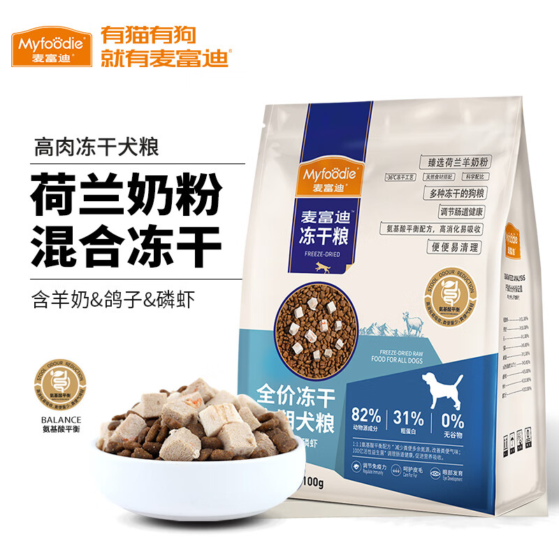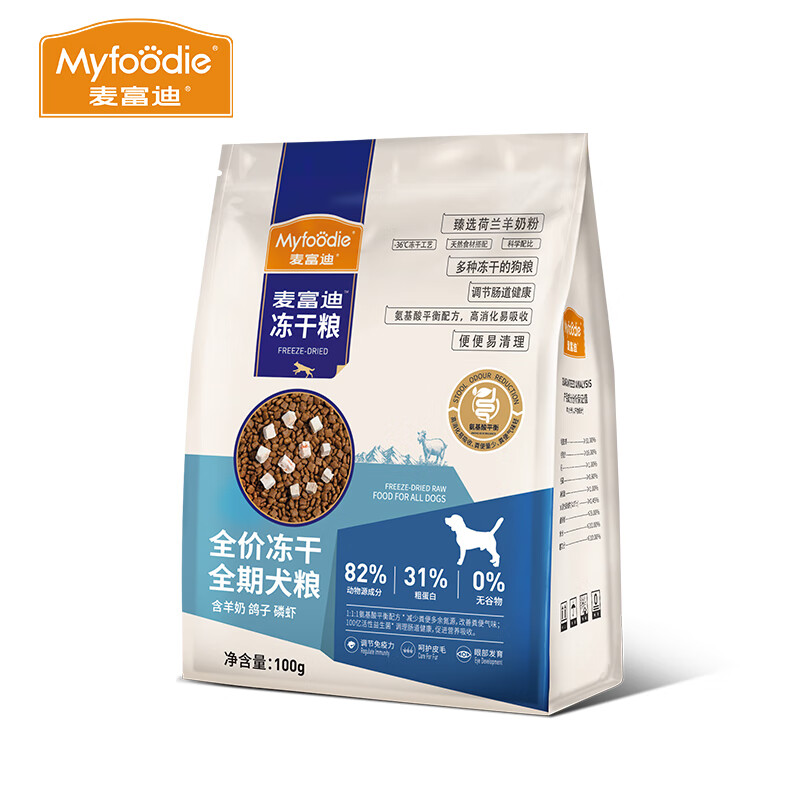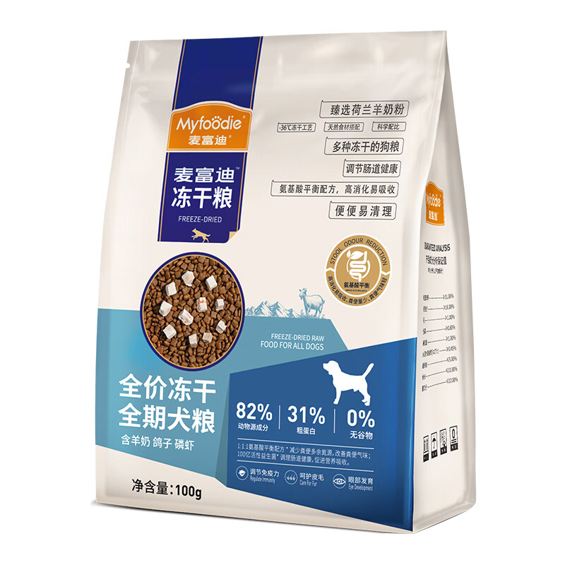 麦富迪全价冻干狗粮 贵宾博美萨摩耶羊奶鸽子磷虾配方无谷粮 全期通用型100g