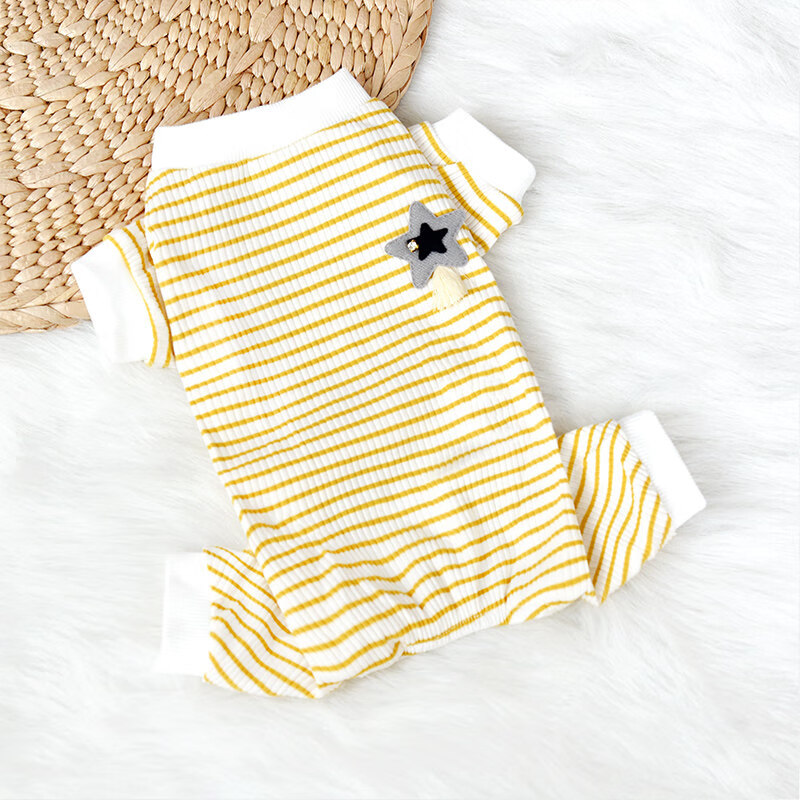 狗狗衣服 春季狗狗睡衣 毛衣泰迪小型犬比熊吉娃娃连体睡衣家居服宠物保暖加厚狗狗猫咪衣服 星星黄白条睡衣【全棉】 S码 【建议3-5斤】
