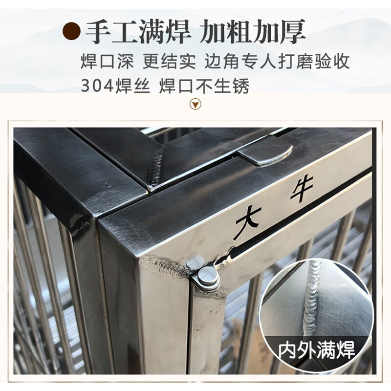 大牛 不锈钢狗笼子大型犬室内家用漏斗带厕所分离金毛折叠宠物笼 折叠80型:80*50*50*25 圆管 方管 室内款