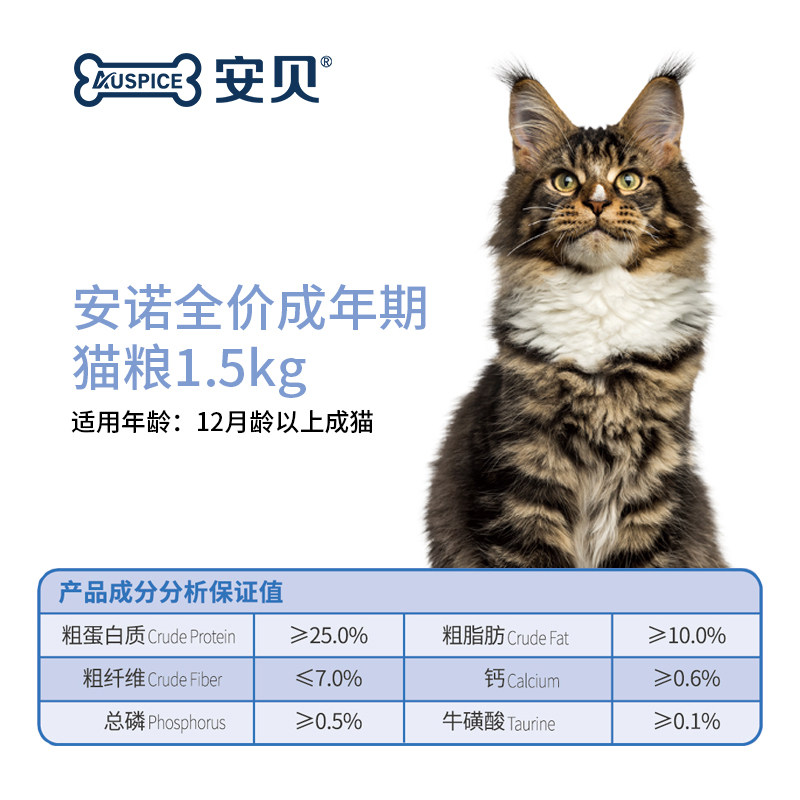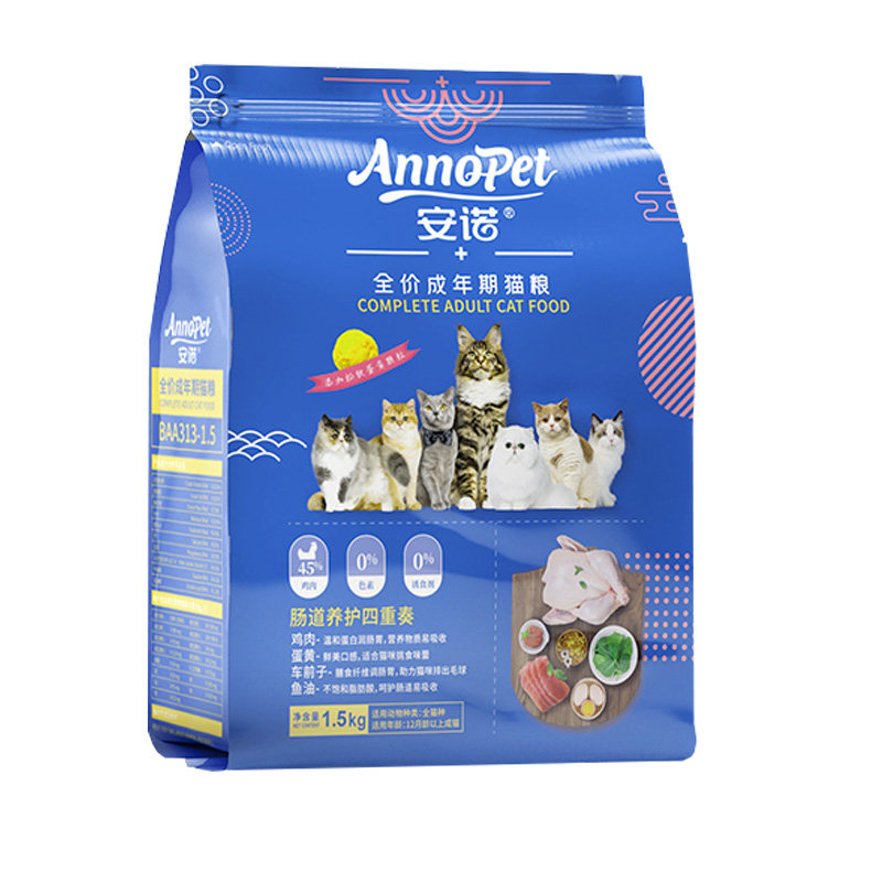 正发安诺全价成猫粮3斤 鸡肉润肠胃蛋黄美口感车前排毛球鱼油肠道