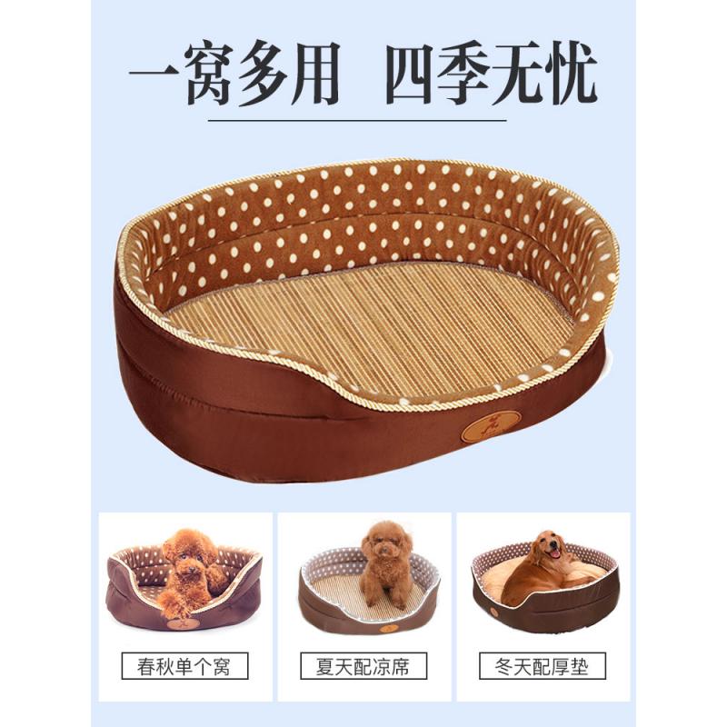 华元 猫狗窝春夏季宠物可拆洗泰迪小狗宠物网红博美柯基大型犬金毛拉布拉多四季通用凉窝凉席 深浅咖啡窝 凉席 L-80cm(50斤内)
