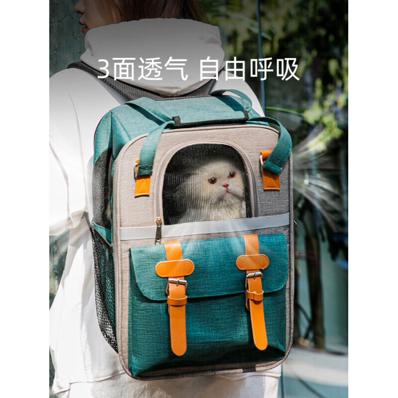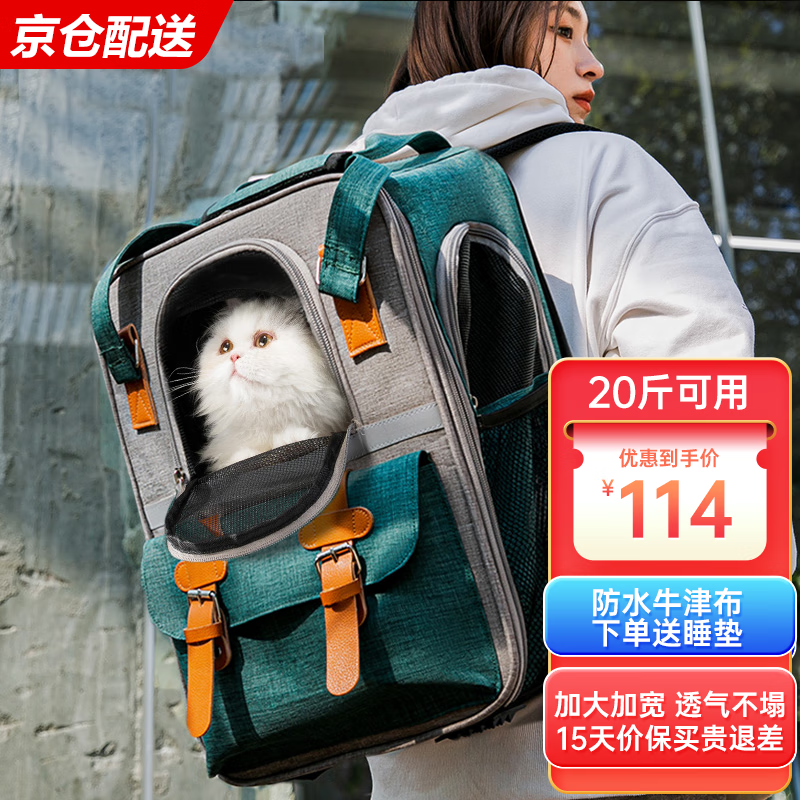邦可臣 猫包大号拉杆双肩透气夏宠物狗狗外出包猫包便携大容量背包猫咪 【新品】墨绿 超大号(20斤之内猫狗) 羊羔绒睡垫