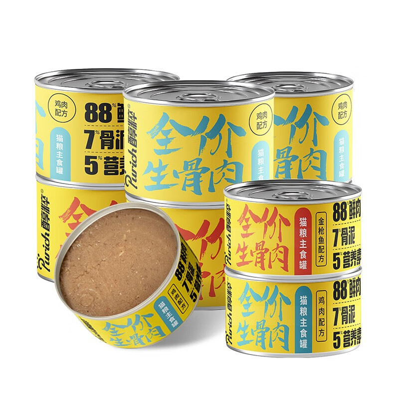 醇粹全价生骨肉猫主食罐宠物金渐层折耳英短猫咪可拌粮美味湿粮罐头 85g*48罐(金枪鱼)