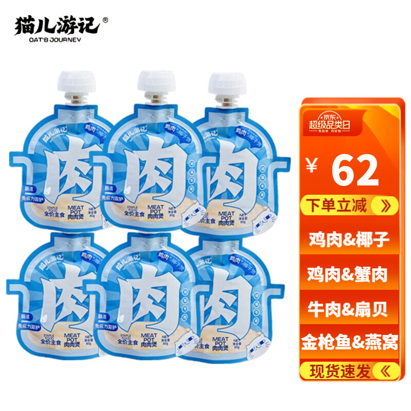 布兰德猫儿游记系列肉肉煲成猫幼猫咪主食餐包湿粮咕噜酱营养增肥发腮软罐头 【鸡肉 椰子 羊奶】椰子鸡煲80g*6袋