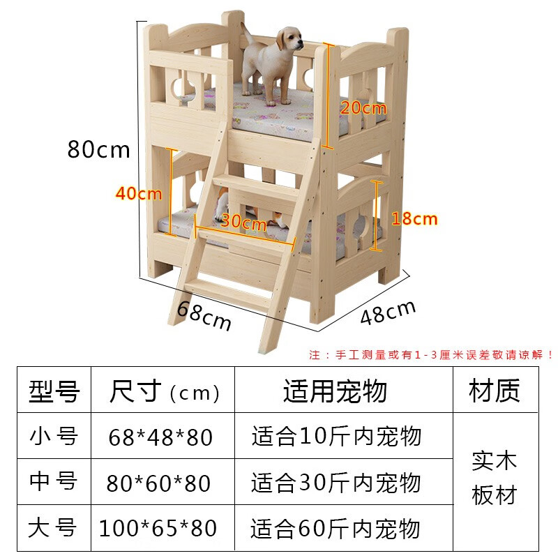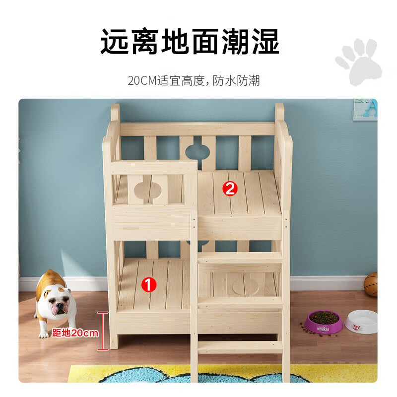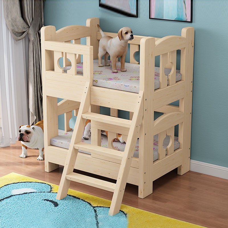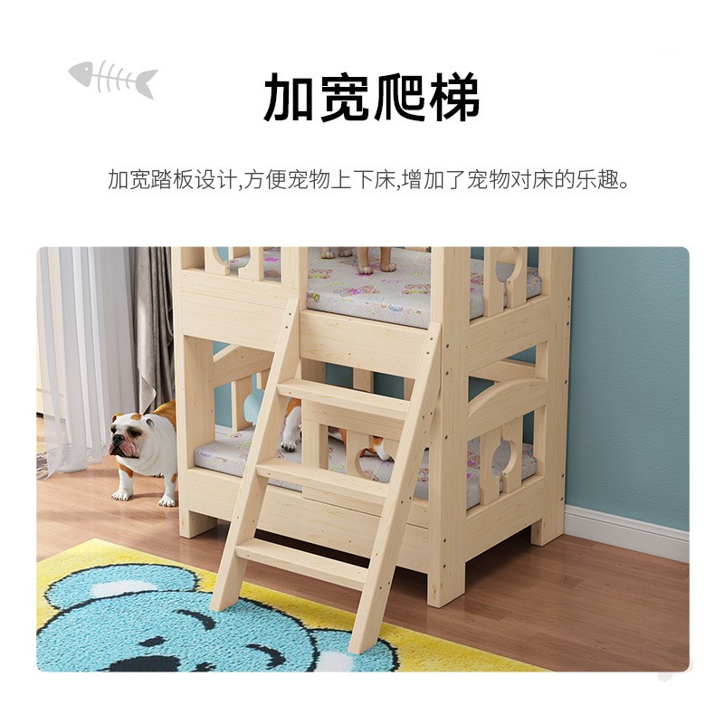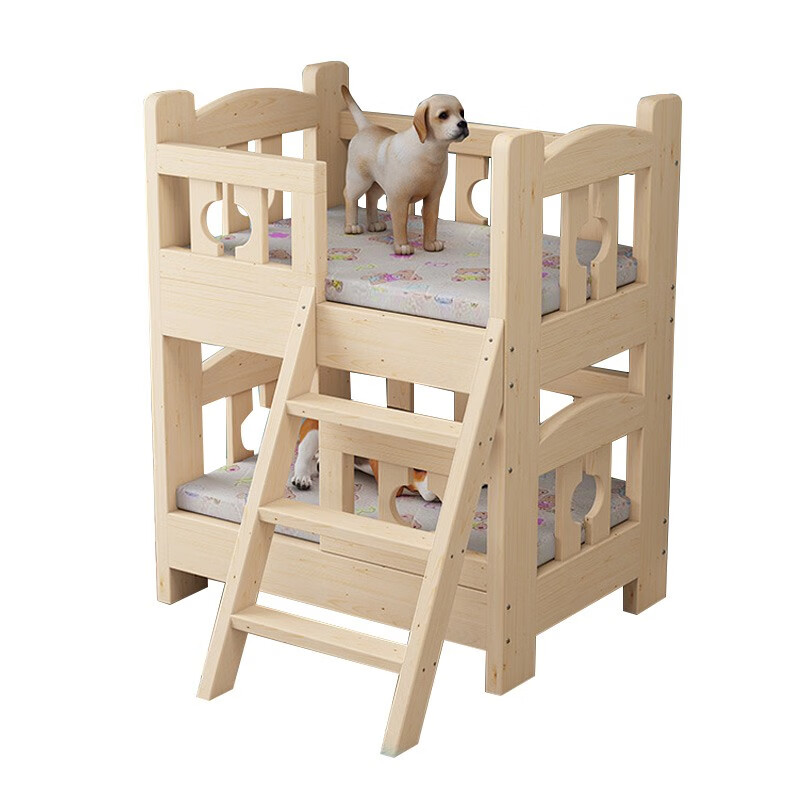 贝尼宠 狗床实木宠物床狗窝猫床泰迪床金毛床比熊床二哈床萨摩耶狗床 实木裸床双层-上下铺 小号68x48x40cm10斤内