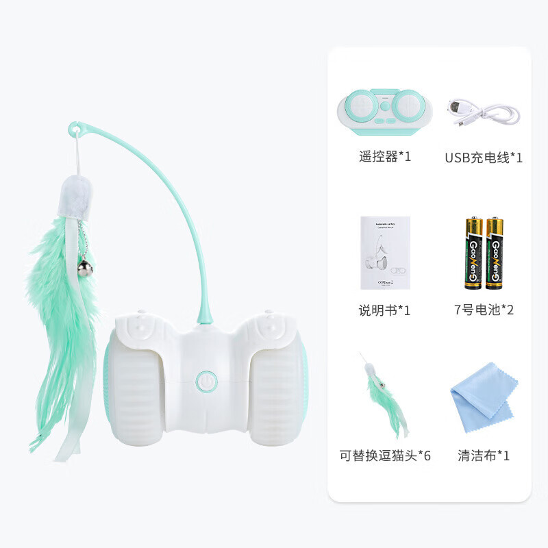 遥控逗猫玩具车电动智能车猫咪狗狗自嗨神器互动电动老鼠自动羽毛逗猫棒猫猫网红同款宠物用品 遥控逗猫车(绿色)