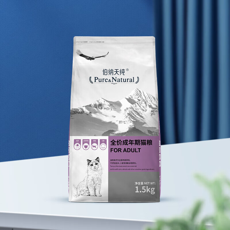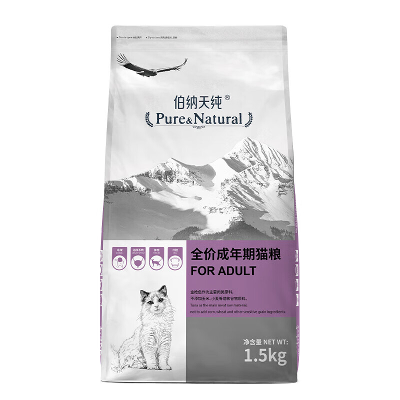 伯纳天纯猫粮成猫专用粮1.5kg 全价成年期低敏天然猫主粮3斤装 成猫专用(鱼肉 鸡肉混合口味) 1.5kg