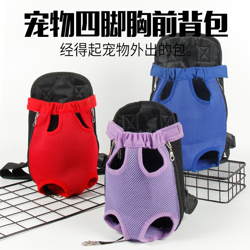 宠物外出背包双肩包便携透气包可爱包猫咪狗狗专用四脚背带单肩包 网布双肩包红色 S建议2斤以内