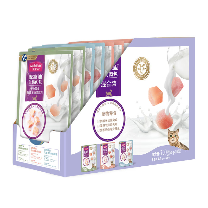 麦富迪(Myfoodie)小佩皇家猫湿粮 麦富迪羊奶肉包猫咪零食肉粒包幼猫成猫湿粮猫猫 【5袋】羊奶炖兔鸡70g 0g具体重量见选项