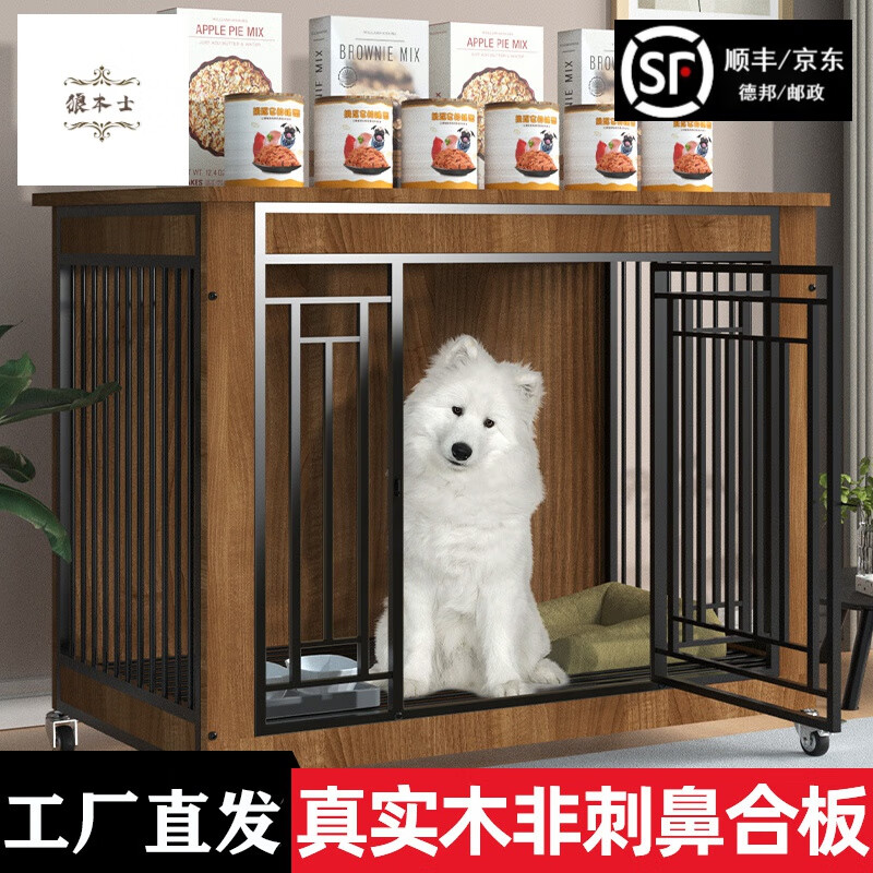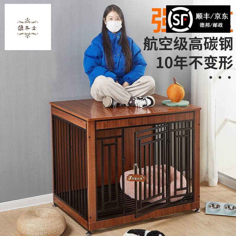 蒂乐森狗笼子全方管木质家具式木屋泰迪大中小型犬室内金毛兔狗窝带厕所 苏香桐色 M号81*53*66cm 全方管.底部结实 托盘