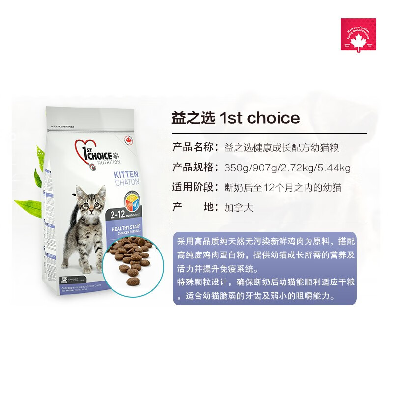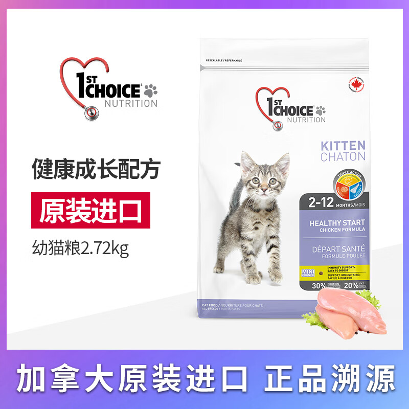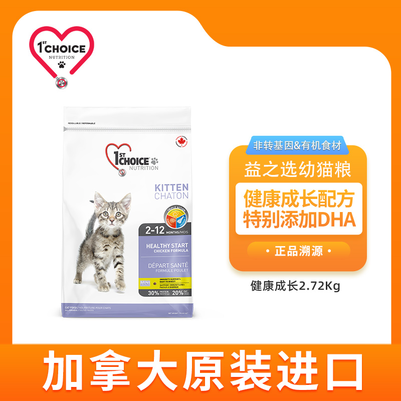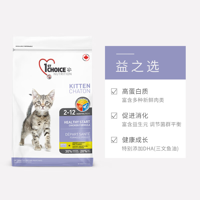加拿大原装进口 益之选1'st choice幼猫粮 健康成长配方幼年期猫粮2.72Kg 鲜鱼鲜肉天然粮奶糕主食喵咪主粮