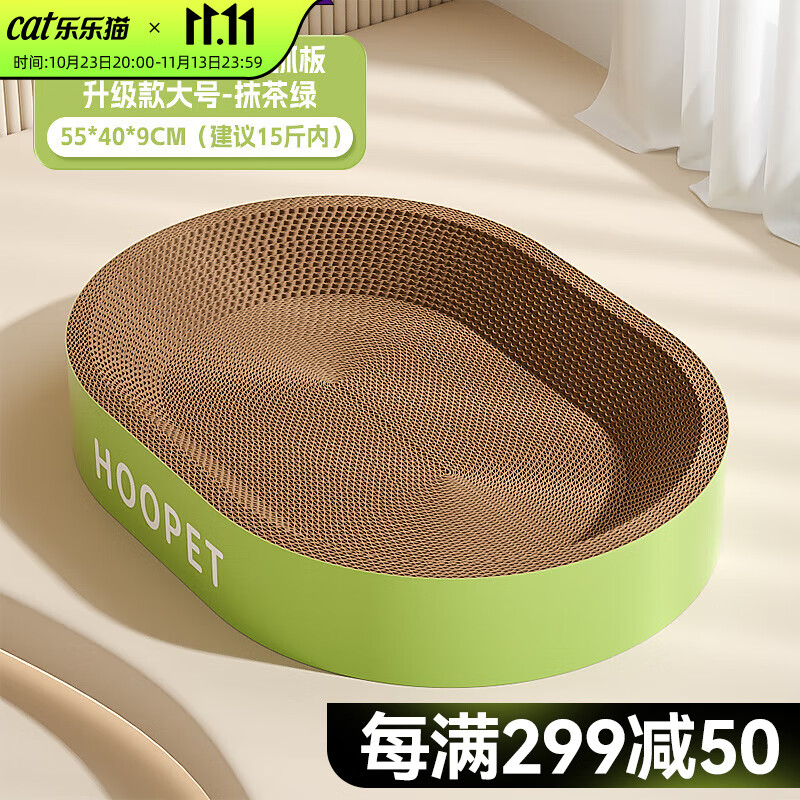 华元宠具(hoopet)猫抓板耐磨不掉屑猫窝一体猫咪抓盆特大号圆形四季通用瓦楞纸玩具 椭圆-抹茶-大号