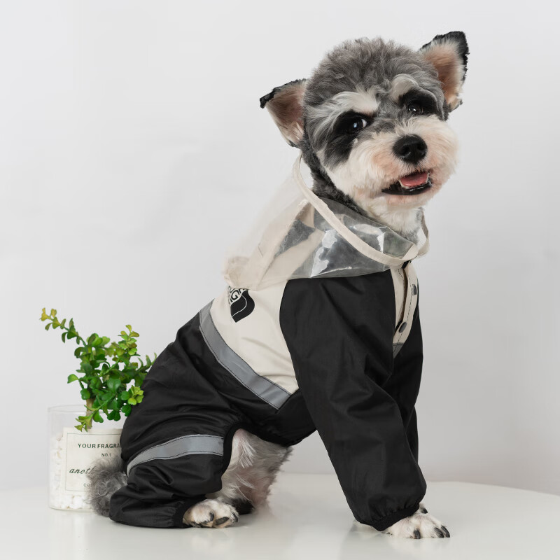 狗狗衣服秋季潮牌 狗狗雨衣泰迪雪纳瑞小型犬四脚防水全包雨披宠物大型犬雨天衣服潮 米色四脚防水雨衣 M