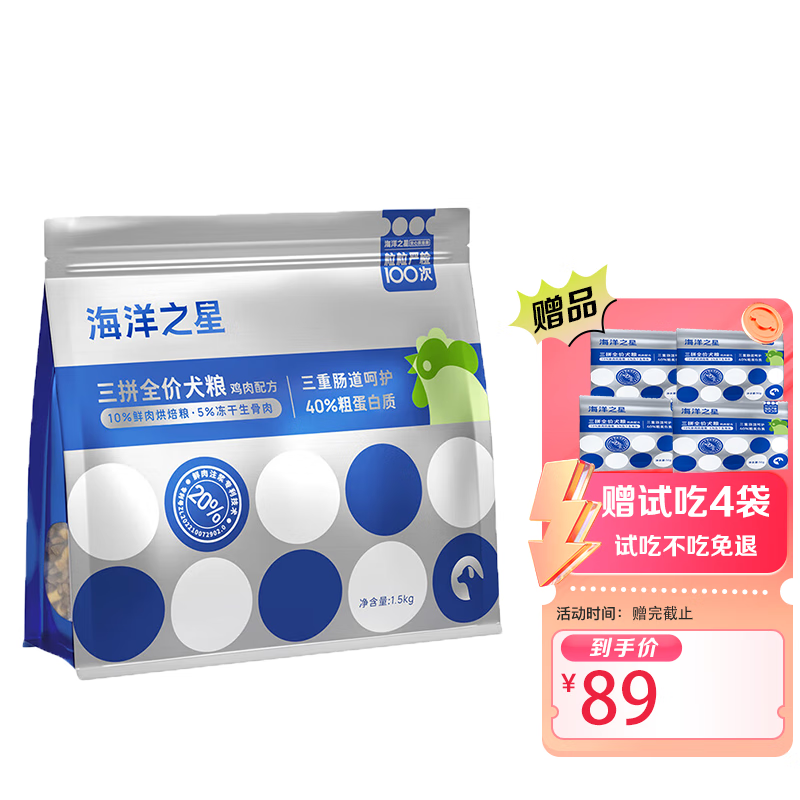 海洋之星Fish4dogs三文鱼中大型成犬粮狗粮天然无谷粮 泰迪金毛狗干粮 三拼冻干鸡肉犬粮1.5kg