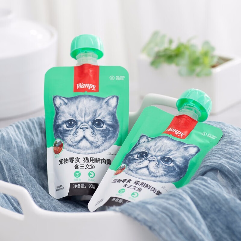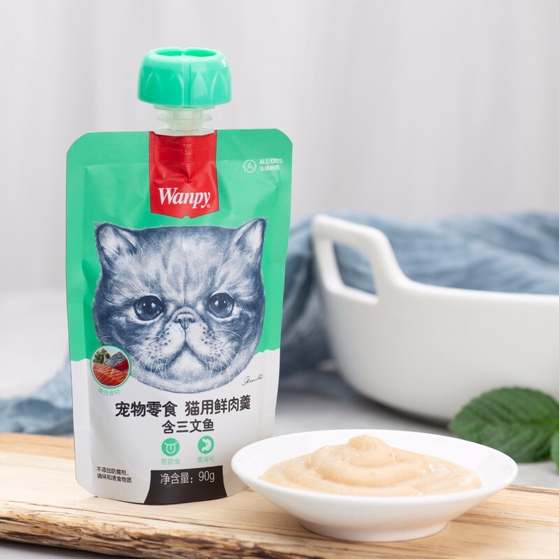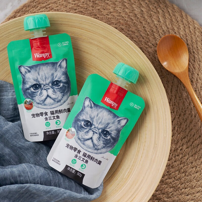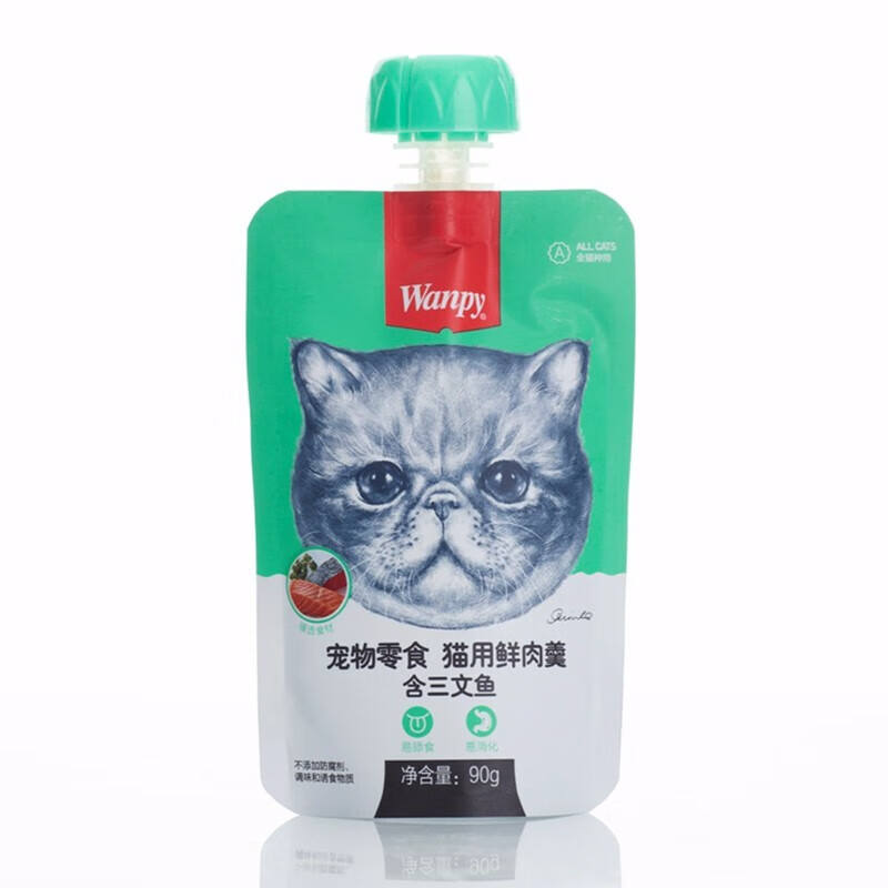 顽皮(wappy) 猫零食宠物零食鲜肉羹 三文鱼鲜肉羹丨90g*8袋